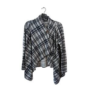 Bobeau Plaid Grey Long Sleeve Wrap Cardigan Size M
