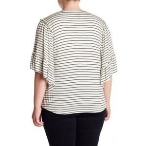 Bobeau Plus Size Stripe Flounce Sleeve Tee NEW