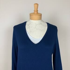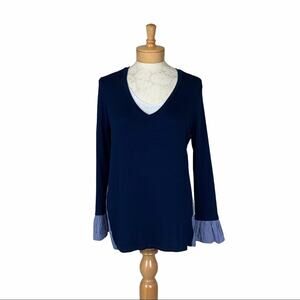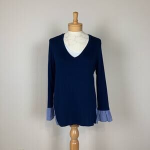 Bobeau Poplin Back Detailed Top Navy Size Small