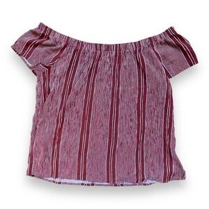 Bobeau Red With White Stripe Off Shoulder Short Sleeve Top Size Large