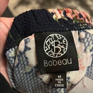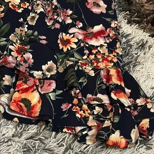 This stylish midi skirt by Bobeau showcases a fit and flare silhouette, enhanced by ruffled and asymmetrical details. The vibrant red and orange colors make it an ideal choice for casual or resort wear, offering both elegance and comfort.