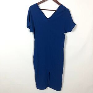 Bobeau Royal Blue Pocket Front Slit Shift Midi V-Neck Dress
