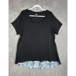 Bobeau Short Sleeve Sheer Back Hi Lo Tunic Top Womens Size 2X Stretch Scoop Neck