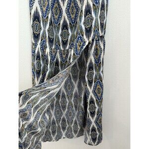 Bobeau Studio B Women Boho Rayon Maxi Skirt Size XL Blue White Boho Slit EUC