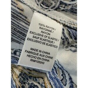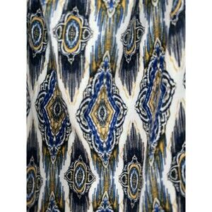 This beautiful Bobeau Studio B women's maxi skirt in size XL is perfect for any occasion. The skirt features a geometric pattern in blue and white and is made of high-quality rayon material. The pull-on closure and slit accents add a touch of bohemian style, making it ideal for festivals, hippie gatherings, and casual or business events.