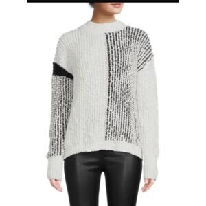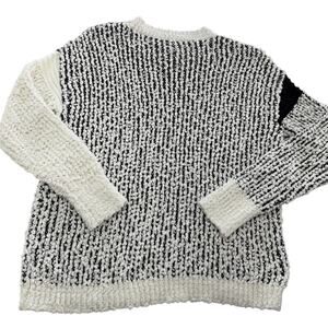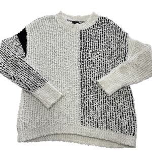Bobeau Sweater Womens Large Black White Colorblock Boucle Crewneck Knit MW1MF3