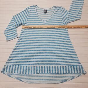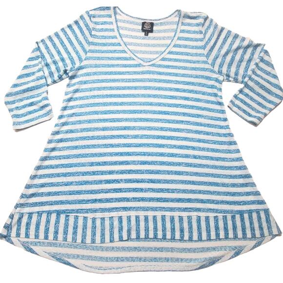 Bobeau Top XL Rayon 3/4 Sleeve Hi-low Relaxed Fit Tunic Stripe Blue Womens Size