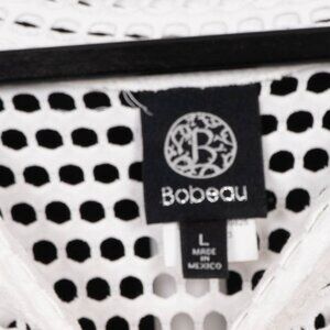 Bobeau White Open Knit Top L Womens Loose Fit Sweater Top Raglan Sleeves