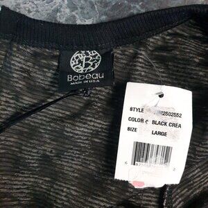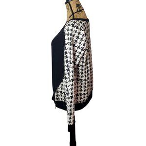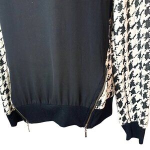 Bobeau Womens L Long Sleeve Zippers Black Cream Houndstooth Top Chic Preppy