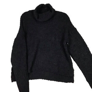 Bobeau Women’s Large Black Popcorn Knit Turtleneck Sweater Hi-Low Hem NWOT