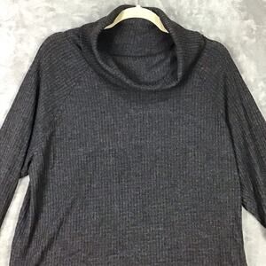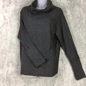 Bobeau Womens Medium Top Dark Gray Charcoal Waffle Knit Cowl Neck Long Sleeve