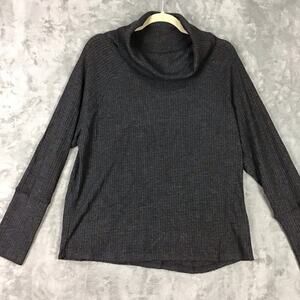Bobeau Womens Medium Top Dark Gray Charcoal Waffle Knit Cowl Neck Long Sleeve