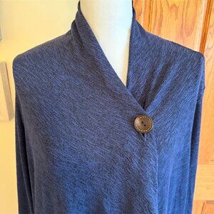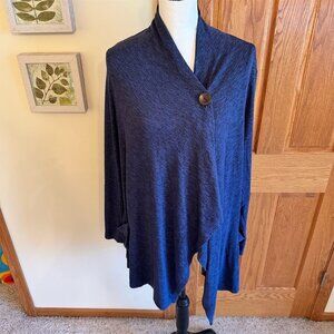 Bobeau Women's XL Blue Asymmetrical Coatagion Sweater with Button Closure