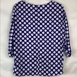 Bobeau blue and white popover polka dot blouse. Oversized fit. Excellent used condition with no signs of wear or stains. 3/4 sleeves