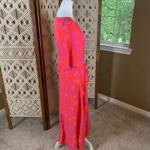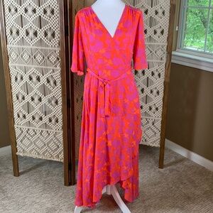 Bobeau candy red & bright magenta wrap dress medium NWT