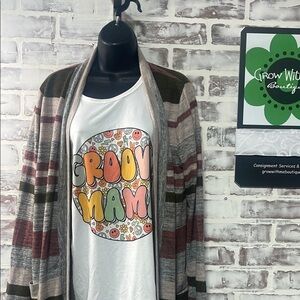 Bobeau pink and Green Cardigan Sweater Cozy Knit Open Front
