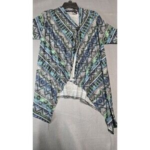 This Bobeau size medium cardigan features an asymmetrical wrap design with one button closure, adding a stylish touch to your outfit. The multicolor pattern gives it a versatile look, perfect for layering over various tops. Made for women, this regular-sized sweater is comfortable to wear and adds a chic flair to your wardrobe. Ideal for casual or dressy occasions, this cardigan is a must-have piece for any fashion-forward individual looking for a trendy and unique outerwear option.
