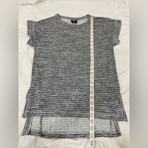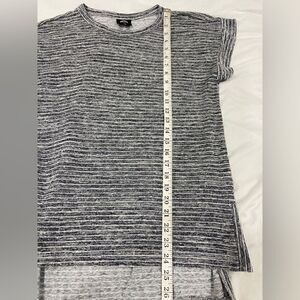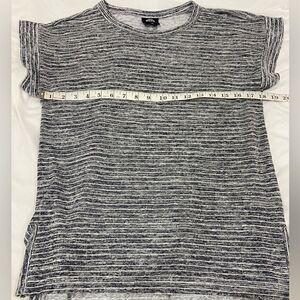Bobeau Classic stripes pattern this washed T-shirt finished with split side seams for easy mobility. 28" length Crewneck Short sleeves 55% polyester, 45% rayon