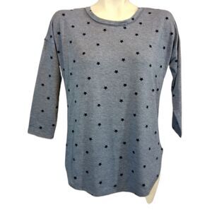 Casual blue tunic with soft flocked tiny stars on it, size small 63% Polyester 33% Rayon 4% Spandex NWT
