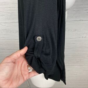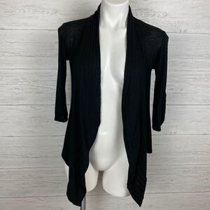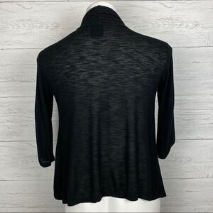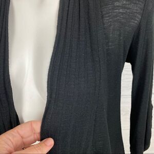 This 3/4 sleeve cardigan is adorable with ribbing detail as seen in photos. Black cardigan with burnout fabric. EUC- no detected flaws!