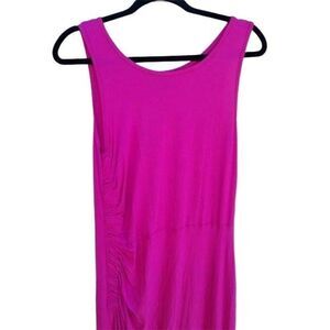 Bobeau Ruched Side Slit Sleeveless Scoop Neck Maxi Dress Barbie Pink Sz S