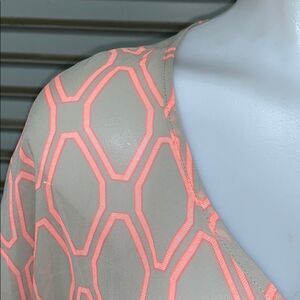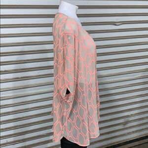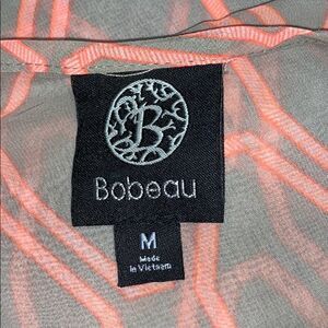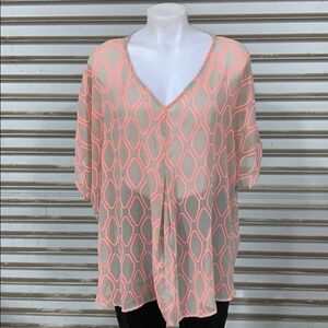 Bobeau sheer gray top w/ orange geometrical design oversized Gently used see photos for more details Women’s size medium A220