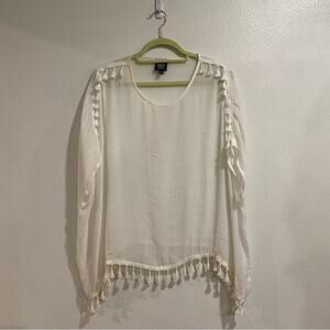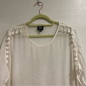 Bobeaux Ivory Fringe Short Sleeve Blouse Sz XL