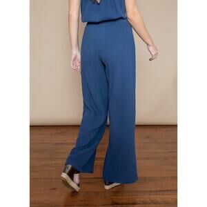 Bobi Beach Coast High Rise Pull On Smocked Waist Cotton Wide Leg Pants Blue L