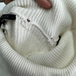 Bobi Black Sweater Womens Small White Cowl Neck Cable Knit Sleeve