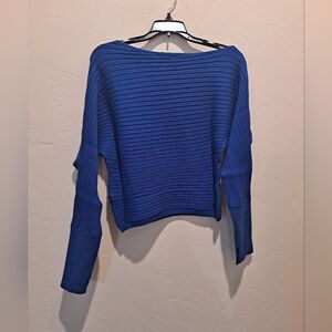 Bobi Black royal blue off shoulder directional rib sweater size extra sm…