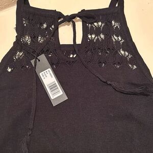 Bobi Black Women's Size M High Neck Crochet Tank Top Black Tie Back New