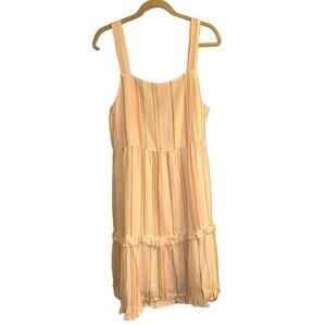 Bobi Women's Square Neck Tiered Striped Mini Dress Size L Cream Multicolor NWT
