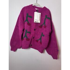 Bobo Choses Kids Pink 'bobo Cherry' Cardigan In Fuchsia Sz 6/7 NWT $325