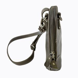 Bobo Neutral Leather Compact Bag Taupe Gray Commuter Office Crossbody Purse City