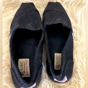 These Toms style shoes by Bobs from Sketchers are in great condition. They’re unique because they’re wool, dark black.