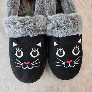Bobs Cat Slippers Womens Size 8 Black Kitty Comfort Slip On Fur lined House Shoe