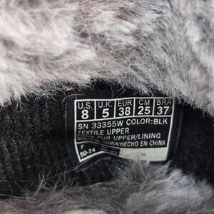 FEATURES/ACCENTS: Round toe. Comfort, cushioned footbed. Fur lined. Black color. Slip on style.