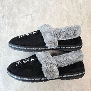 Bobs by Skechers TOO COZY MEOW Cat Slippers Womens Size 8 Black Kitty Comfort Slip On Fur lined House Shoe (D5-023)