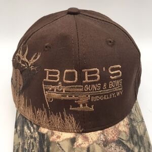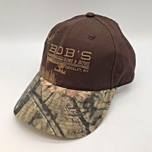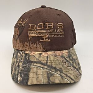 Bob's Guns & Bows Ridgeley, WV. Hunting Hat. Port Authority Baseball Cap, with beautiful, Embroidered Elk Logo, on Brown and Camouflage, Cotton Strapback Hook & Loop Cap. Shop closed, so very RARE Cap. Really NICE Hat for those Hunters out there. Ships in NEW box.