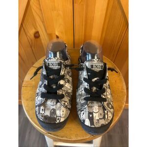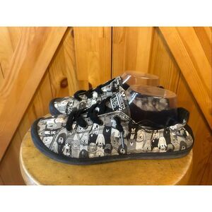Bobs Skechers 9.5 Beach Style Dogs Puppies Black White Lace Up Memory Foam