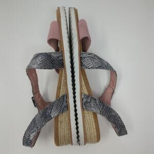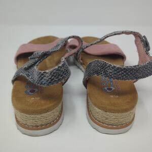 Add some serious style and comfort to your sunny day looks with the SKECHERS BOBS Desert Kiss - Cactus Rose sandal. Soft suede and snake embossed synthetic upper in a strappy casual comfort sandal with stitching accents. Memory Foam footbed