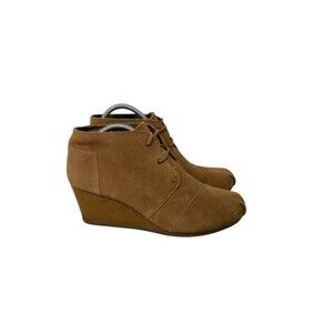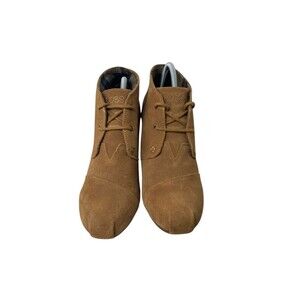 Bobs Skechers Wedge Booties Women's Size 11 Tan Suede Lace Up