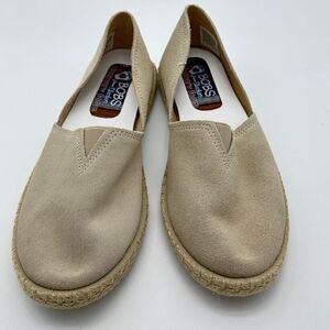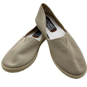 Bobs Skechers Womens SZ 7 1/2 Day 2 Nite Natural Tan Suede Upper Rope Trim Flat