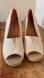 Bobs Weave High Heel Peep Toe Wedges Cream Tan Stripes 3.5 in Heel Women's 10