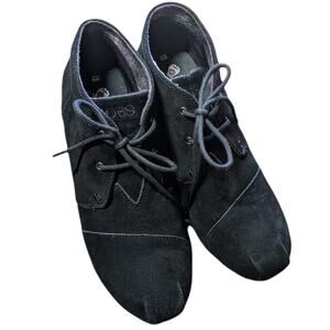Bobs leather wedges are lace-up black. Size nine, excellent pre-owned condition.