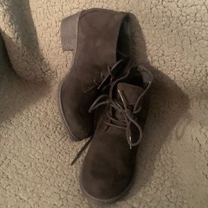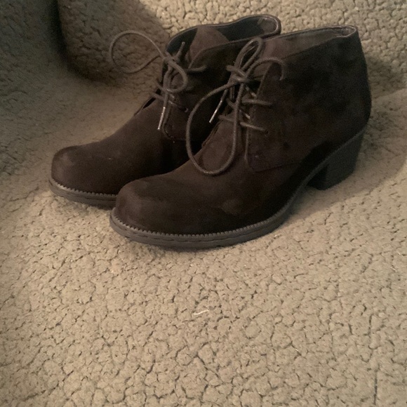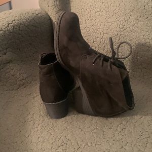 Black genuine suede lace up ankle booties non slip grip small rubber heel Smart cute quality shoe.