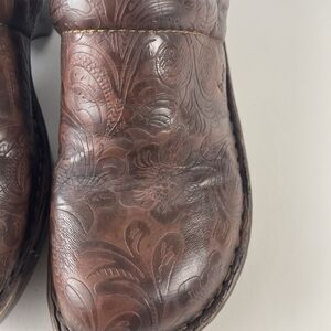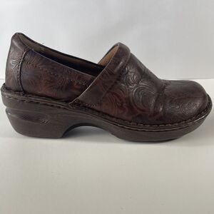 Boc BORN concepts brown leather flower embossed clogs women's 9/40.5