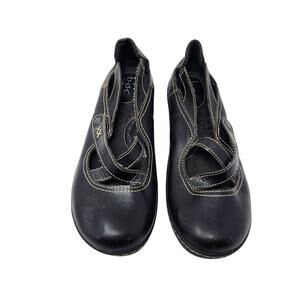 Boc Born Concept Black Leather Strappy Slip On Flats Mary Jane Shoes Size 7.5M