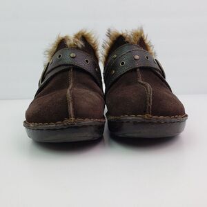 Boc Born Concept Womens Size 8 Brown Suede Leather Slip On Faux Fur Mule Clog Shoes