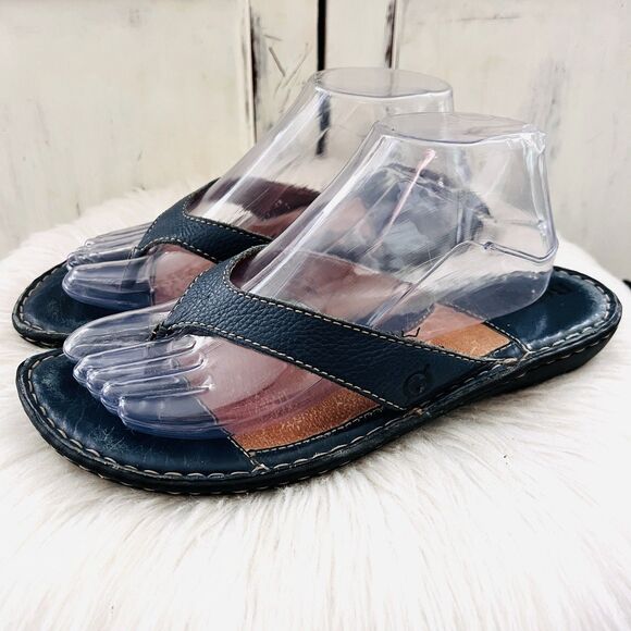 Boc Born Navy Blue Leather Slip on Earthy Boho Comfort Sandals - Size 9 EU40